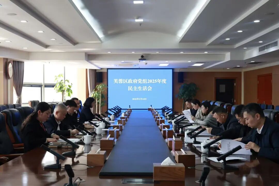 2026年2月14日下午,根据中央、省委、市委和区委的部署要求,芙蓉区政府党组召开2025年度民主生活会。会议以“深入学习贯彻习近平新时代中国特色社会主义思想,全面贯彻落实党的二十届四中全会精神,以打攻坚战、持久战的决心和恒心,锲而不舍落实中央八项规定精神,推进作风建设常态化长效化,以优良作风凝心聚力、真抓实干,奋力打造城市高质量发展示范区”为主题。紧密结合芙蓉区政府工作实际,深刻查摆突出问题,严肃开展批评和自我批评。